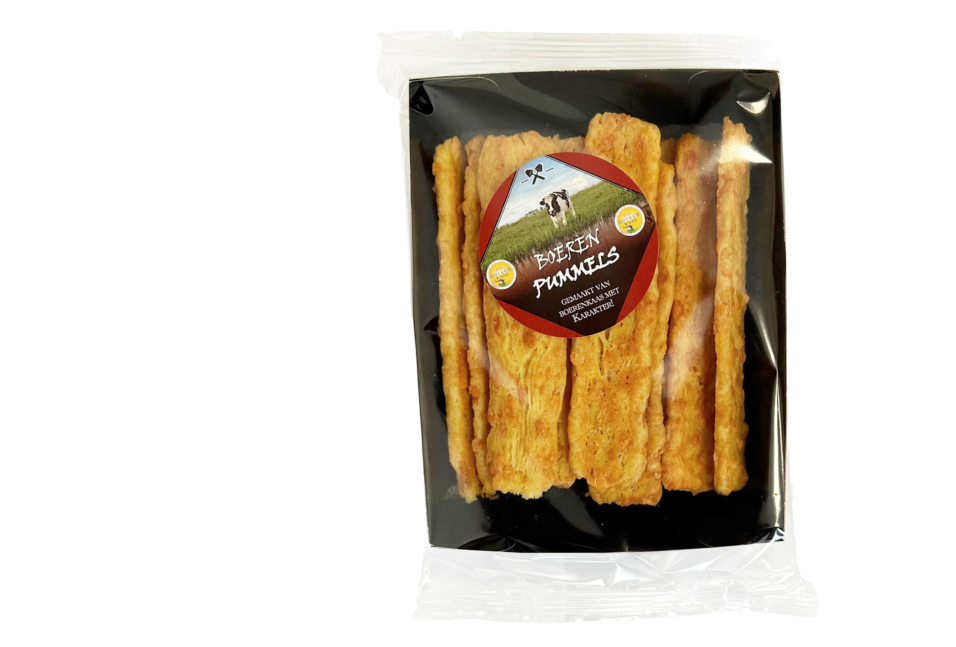 Onze boeren pummels worden ambachtelijk gebakken en vervolgens bestrooid met de boeren kaas die minimaal 1,5 jaar gerijpt is. Er zit maar liefst 45% kaas op deze pummels!