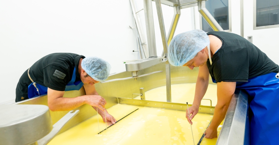 In het Friese Steggerda runnen Piet Langeveld, zijn vrouw en hun drie kinderen een melkveebedrijf met circa honderd melkkoeien op zestig hectare grond. Hier maken ze onder andere kazen van maar liefst 65 kilo! Hier zijn ze speciaal voor Kaashandel Remijn mee begonnen.